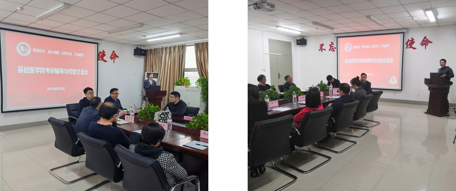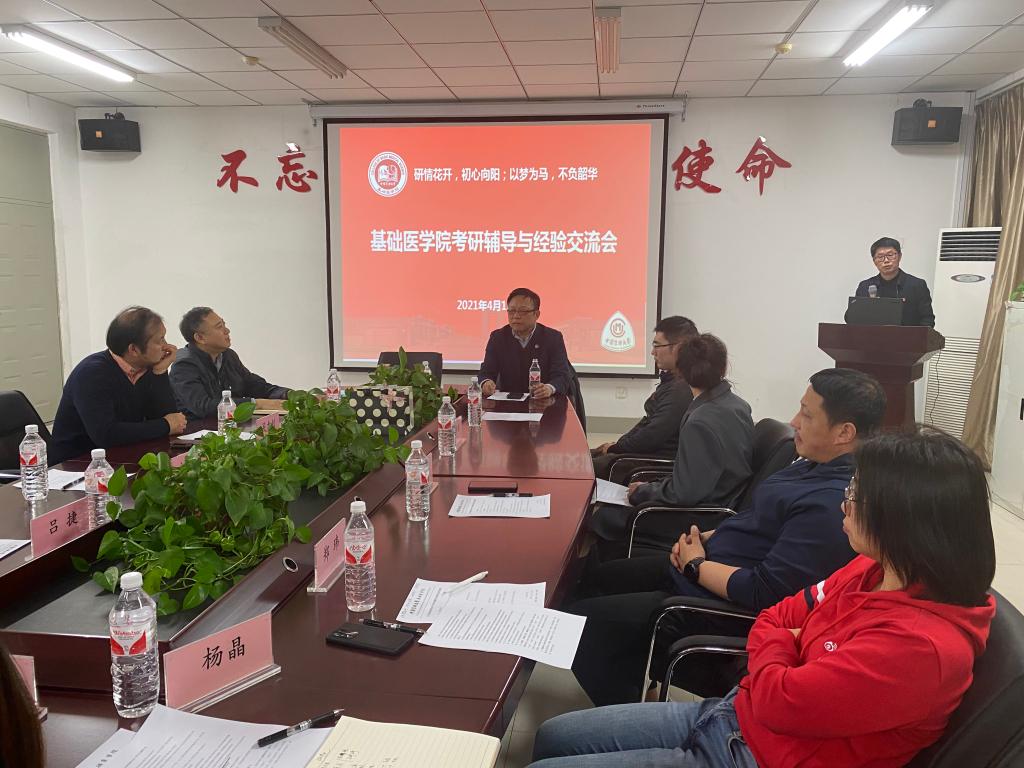为推动学院党史学习教育有序有力有效开展,用心用情用力开展“我为群众办实事”实践活动,聚焦学生成长成才,回应学生所思所盼,针对学生目前面临考研与就业等问题,基础医学院于2021年4月16日晚组织召开了2021年考研辅导与经验交流会,邀请在2020年全国硕士研究生入学考试中取得优异成绩的王婷婷、薛航两名同学进行考研专题辅导和经验交流。学院领导班子成员、教研室主任和职能科室负责人参加了会议。会议由学院党委书记王爱民主持。