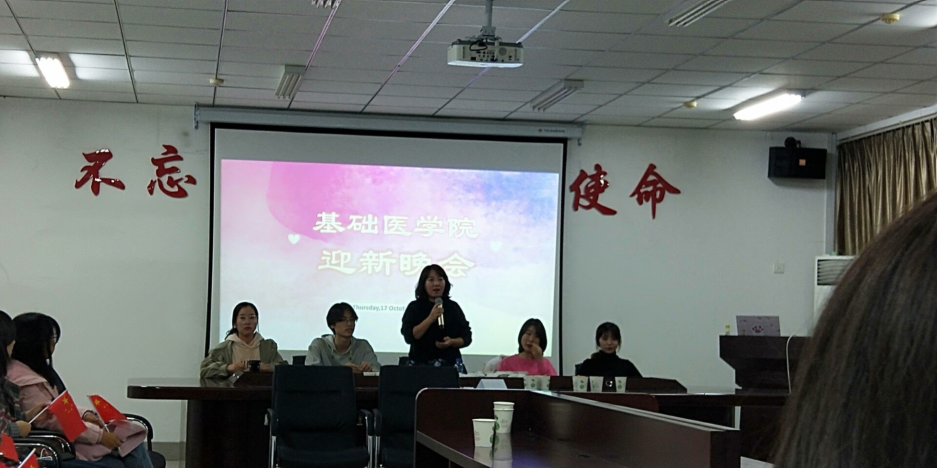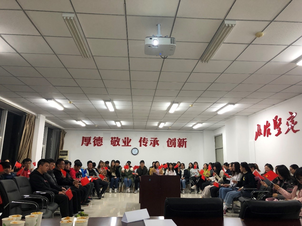 为号召学生铭记历史,培养爱国情怀,10月17日晚,在学工办主任兼学生党支部书记杨晶老师带领下,学生团委在基础医学院C座大会议室举办庆祝新中国成立七十周年“不忘初心、牢记使命”爱国主义教育主题活动,迎接2019级新生,共同庆祝新中国成立七十周年,基础医学专业全体学生参加。