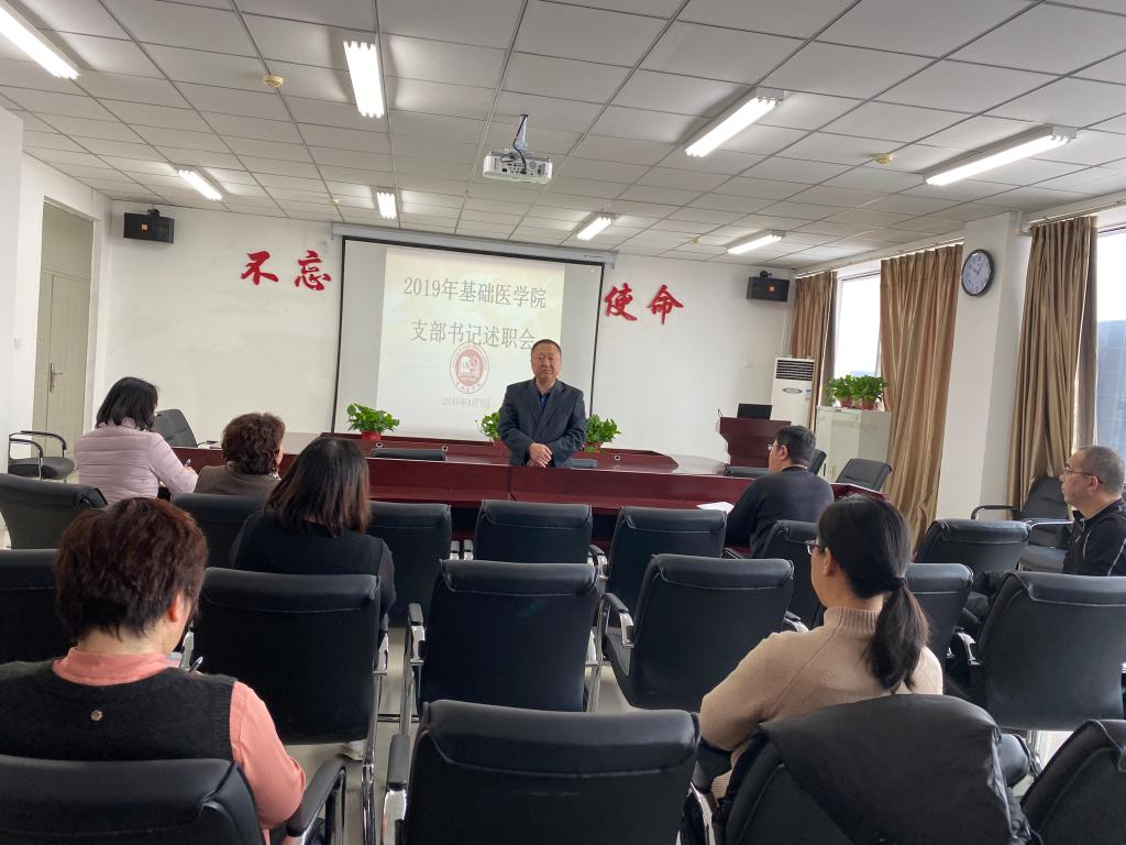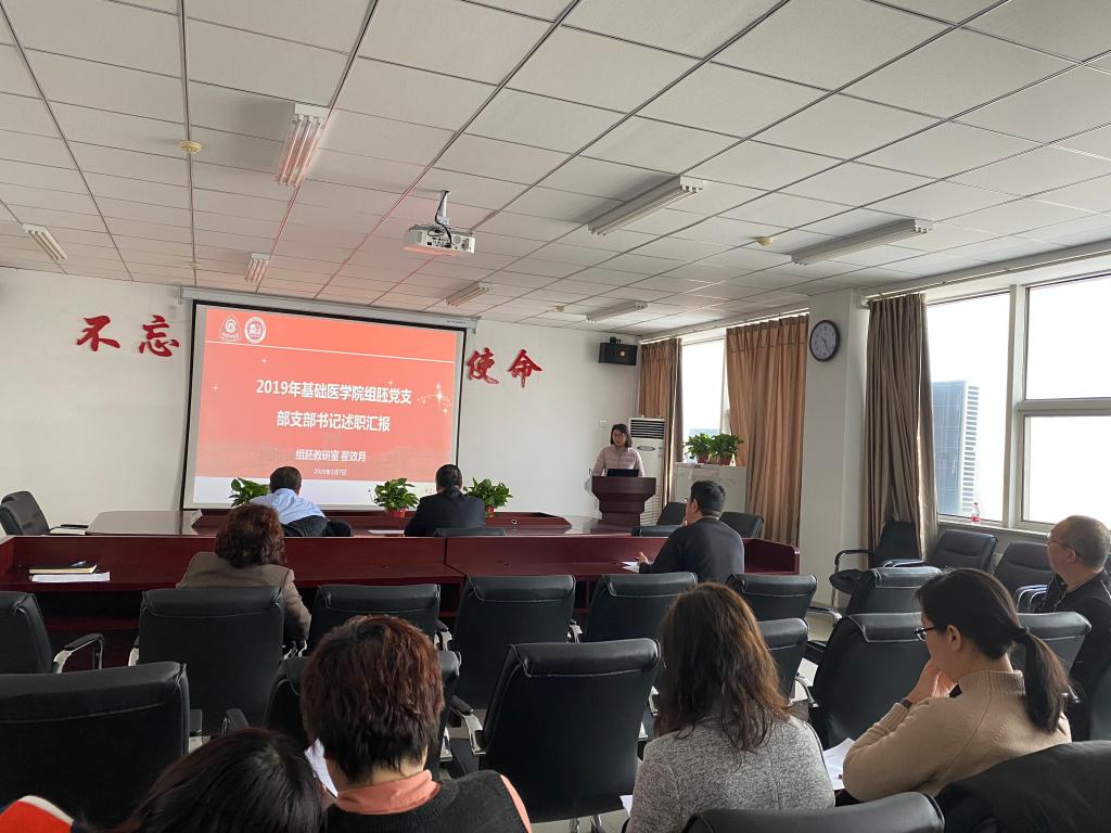 基础医学院党委按照医大党发〔2019〕113号 关于印发《河北鑫恒强电子科技有限公司2019年度党组织书记抓基层党建述职评议考核工作实施方案》的通知要求,于2019年1月7日召开述职评议会,学院所属10个党支部书记向学院党委进行现场述职。2019年度述职评议考核,认真贯彻落实习近平新时代中国特色社会主义思想和党的十九大精神,落实全面从严治党要求,进一步推动全面从严治党向基层延伸,促进基层组织建设全面进步全面过硬提高基层党建工作质量。