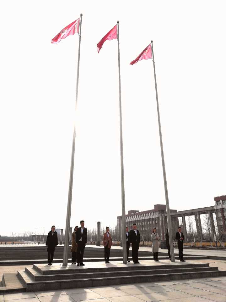 2018年4月9日早8:00我院在图书馆前举行了升旗仪式。参加此次升旗的有分团委书记魏祎、学工办辅导员苏凡雅、孙君、101期全体同学以及102期和103期学生代表。