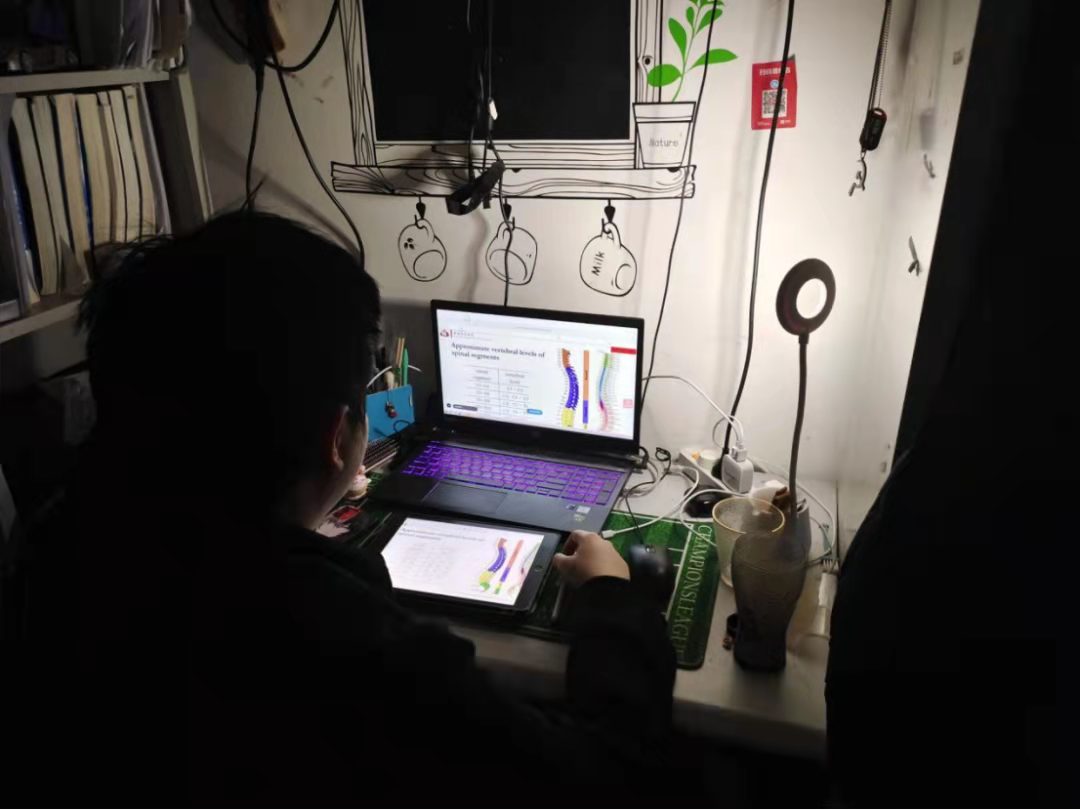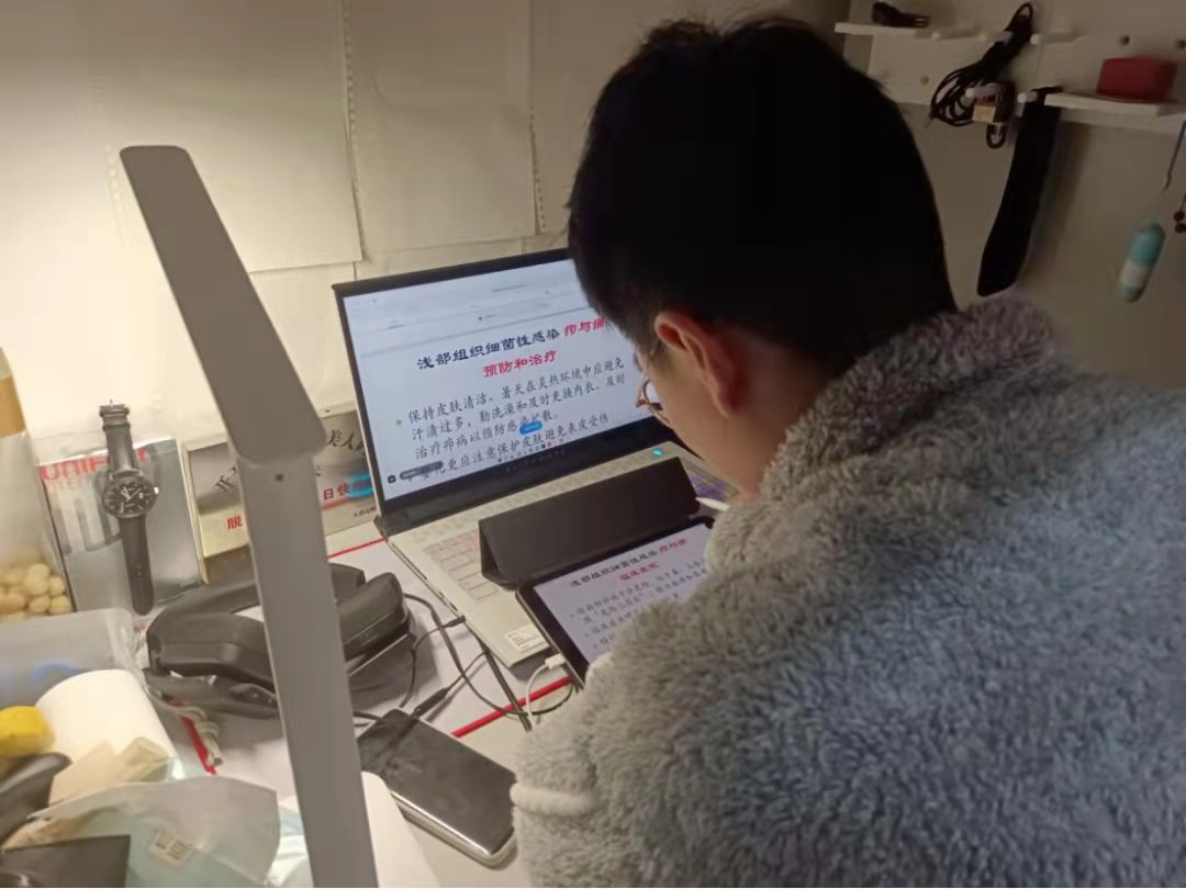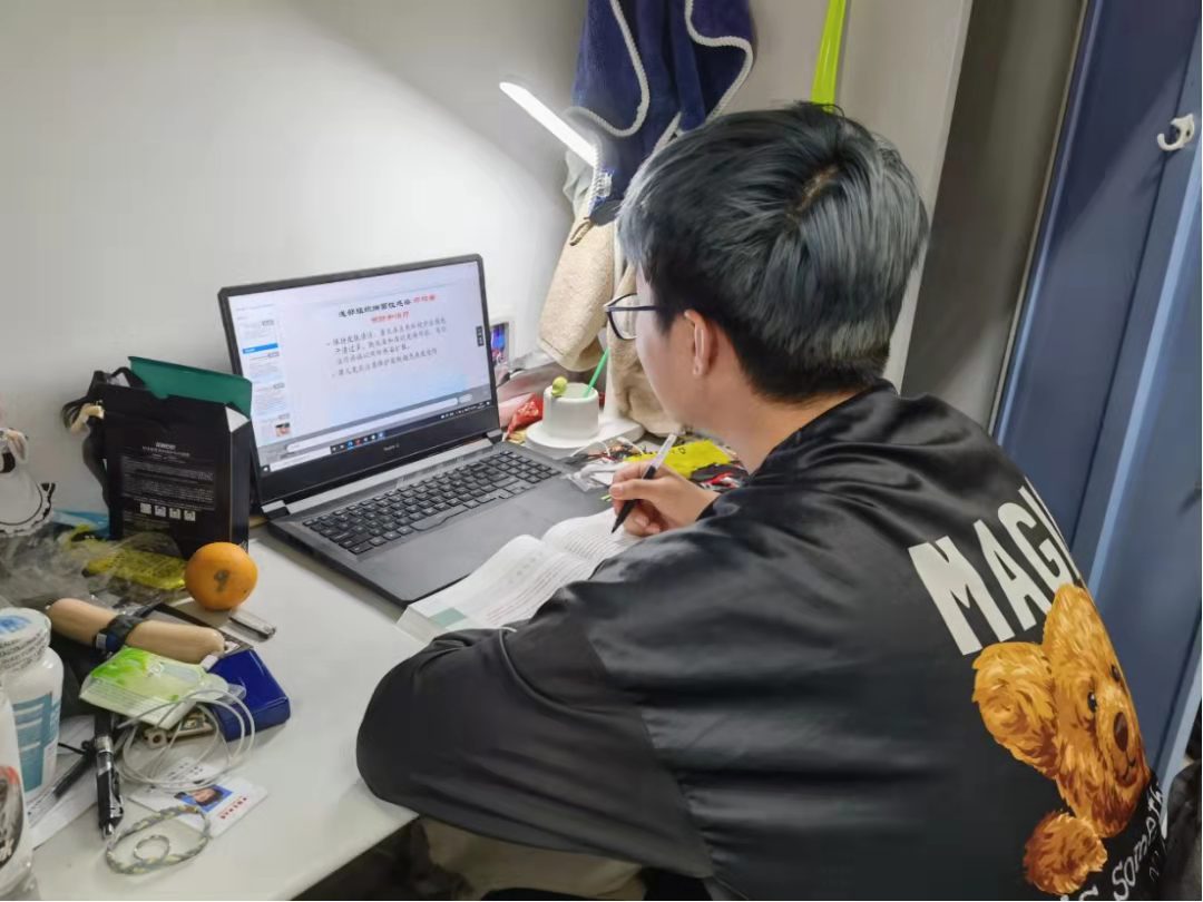 封校管理期间,同学们进出校园受到了限制,但依旧做到不停学、不停课。学校多措并举,通过QQ群、腾讯会议、雨课堂等方式进行“云”授课,保持师生交流互动,保障课程进度。创新学院的同学们积极配合,在寝室中进行线上学习,做到防疫学习两不误。