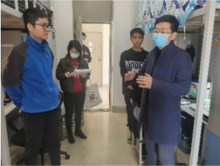 封校管理期间,学院党总支书记带头一直坚守岗位,靠前指挥,带领学院辅导员经常深入学生寝室,关注生活起居大小事宜,了解同学们的学习和生活情况,积极回应同学们的诉求,协调解决相关问题,全力做好同学们的坚强后盾。
